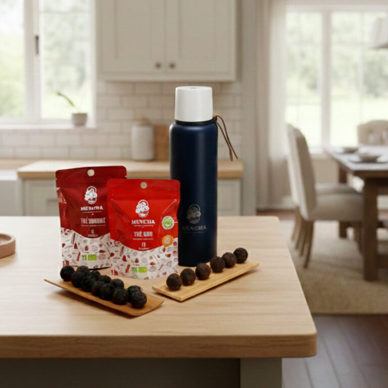 → Billes spécialement dosées pour la bouteille isotherme Mencha: Une infusion équilibrée, toute en douceur, sans astringence.