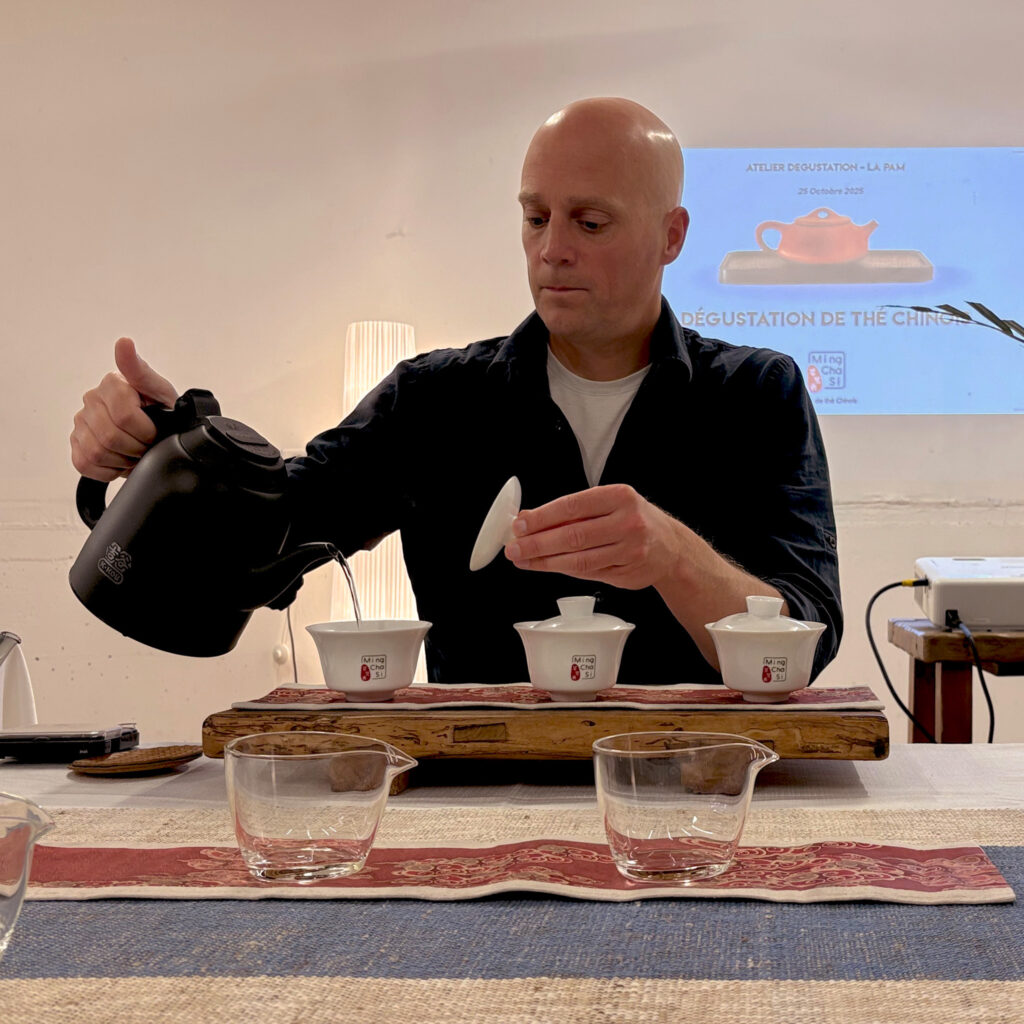 En 2022, après un temps d’adaptation à leur nouvelle vie, les choses deviennent plus claires. Saichun crée Ming Cha Si, son espace dédié au thé chinois pour les Français. Son projet s’articule entre ateliers de dégustation et évènements autour du thé chinois.