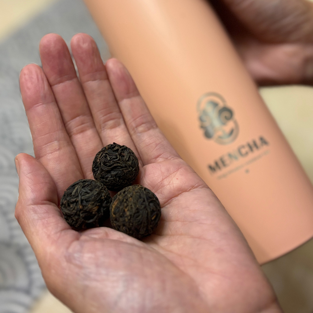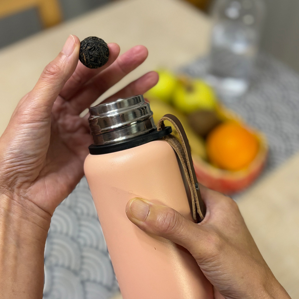 Des billes de thé compressées (Tchaball) qui infusent sans limite de temps dans une bouteille isotherme.
