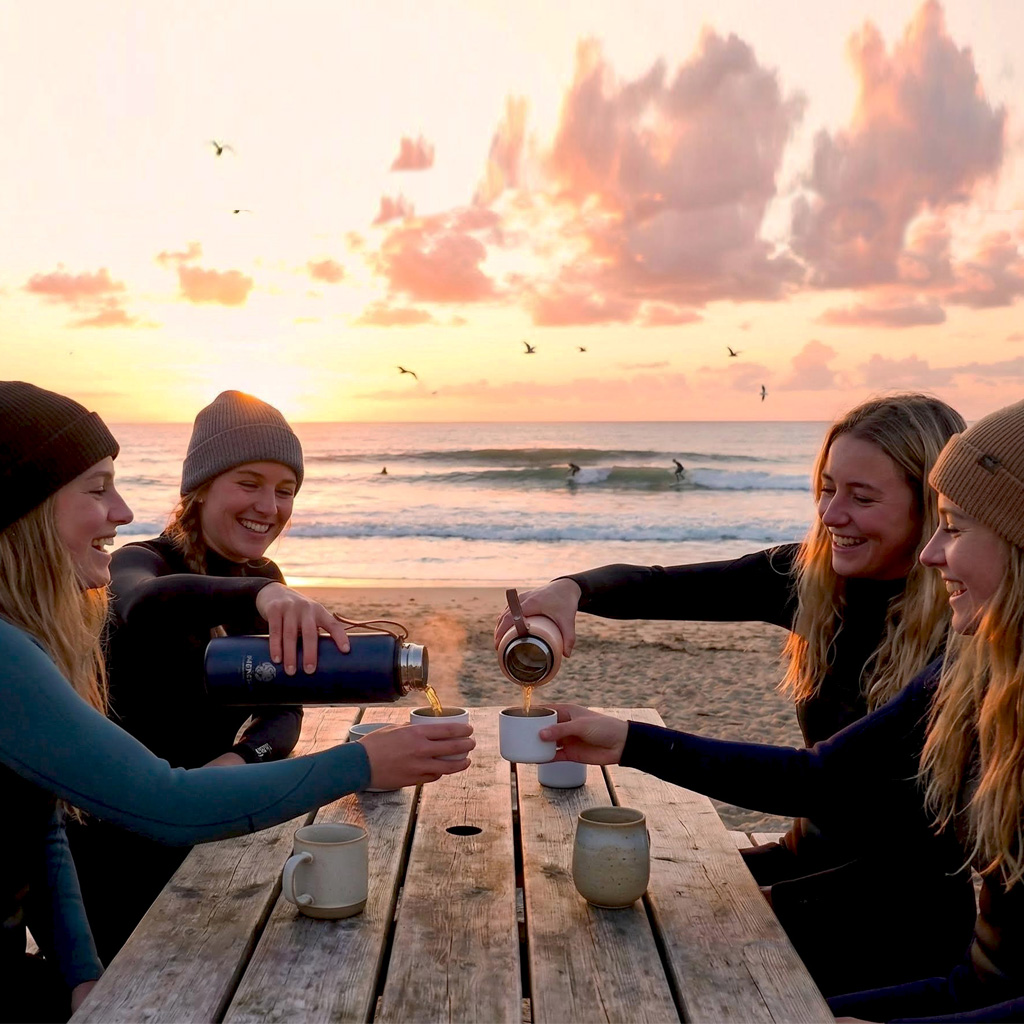 Un jour après une session de surf à Qingdao, il partage son thé entre amis. Tout le monde apprécie. Mencha prend forme.
